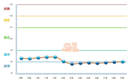 图1 2013.8—2014.09电池行业主营业务收入景气指数变化态势