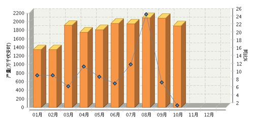 根据国家统计局公布数据,2014年1~10月全国铅酸蓄电池行业累计完成产量18,740.30万千伏安时,同比增长10.00%。其中:10月份完成产量1904.61万千伏安时,同比增长2.55%。2014年全国铅酸蓄电池行业月度产量及同比如下图所示。