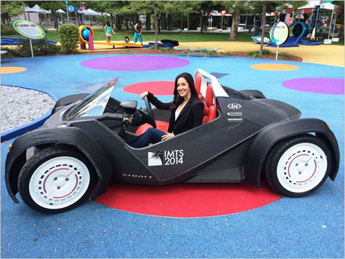 在2014年于美国芝加哥举行的IMTS(International Manufacturing Technology Show)国际制造技术展览会上,号称世界上第一辆3D打印电动汽车“Strati”(斯特拉蒂)就这么在与会者们的亲眼见证下诞生了。更醉人的是,从打印Strati零部件到组装成整车,仅用时44个小时。