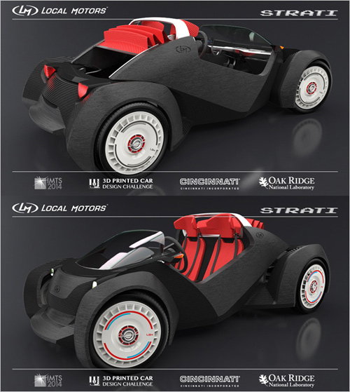 Strati由Local Motors汽车公司打造。Local Motors是一家专门制造新型前沿汽车的美国企业,公司位于亚利桑那州,目前在美人气相当旺。