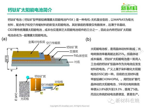作为太阳能电池家族中的一员,钙钛矿太阳能电池正慢慢崭露头角。钙钛矿太阳能电池不仅拥有第一代太阳能电池高转化效率的特点,还有第三代太阳能电池薄膜、柔性化的特点,可用于溶液法卷对卷生产。因此,钙钛矿太阳能电池被认作是最有前景的“冉冉新星”。