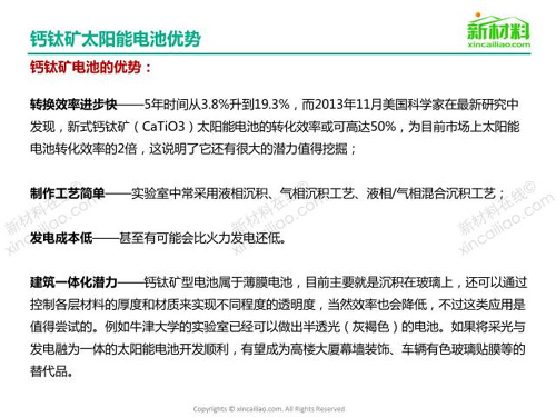 [摘要]作为太阳能电池家族中的一员,钙钛矿太阳能电池正慢慢崭露头角。钙钛矿太阳能电池不仅拥有第一代太阳能电池高转化效率的特点,还有第三代太阳能电池薄膜、柔性化的特点,可用于溶液法卷对卷生产。因此,钙钛矿太阳能电池被认作是最有前景的“冉冉新星”。