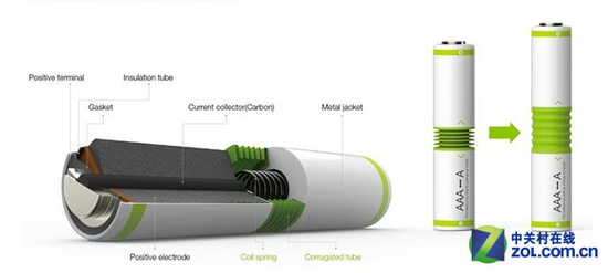 有了这款创意的可伸缩电池,大家就再也不用担心家中遥控器究竟使用5号电池还是7号电池了,做到大小通吃。由于制造成本等原因,这款电池被设计成可充电式电池,因为如果是一次性电池,过高的价格就不具有实用性了。