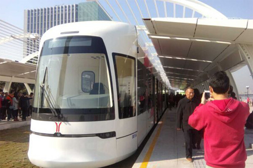 2014年的最后一天,随着一声汽笛的长鸣,广州海珠有轨电车示范线开通,广州市民试乘上世界首列采用超级电容的储能式100%低地板有轨电车。