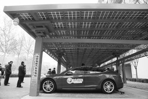 不同于此前特斯拉公司在望京建造的超级充电站只能为特斯拉车辆充电,这座光伏充电站兼容性超出预想,目前市面上主流的国产、日系和欧美等三大车系电动车都可以在这个充电站内实现充电。“一上午来了近10辆车,有北汽新能源的、有奔驰的、还有不少特斯拉。”唐宁说。