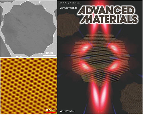 图3 单晶十二角石墨烯(左)及《先进材料》内封底(右)