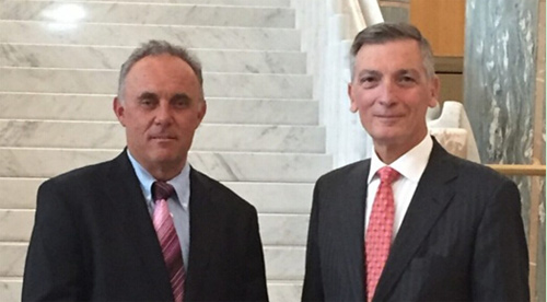 澳大利亚液态金属蓄电池研究公司首席执行官戈登-海恩兹(GordonHinds)和美国的联合发明者唐纳德-萨杜威(GordonHinds)教授