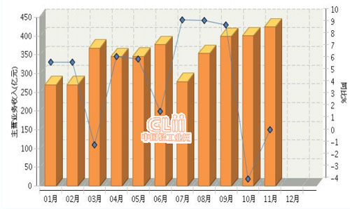 1、11月主营业务收入同比基本持平