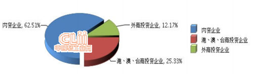 从企业注册类型看,内资企业主营业务收入占比大增速快。内资企业完成累计主营业务收入占62.51%,同比增长7.6%;港、澳、台商投资企业完成累计主营业务收入占25.33%,同比增长-1.56%;外商投资企业完成累计主营业务收入占12.17%,同比增长1.26%。