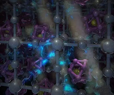 上图为一位艺术家绘制的有机三卤化铅钙钛矿晶体原子模型。在室温条件下,研究人员成功地制造出这些高质量的钙钛矿单晶体。该晶体能有效地将光转换成可很长距离移动的载流子,由于晶体具有极少的缺陷,载流子的运动长度超过10微米。这项研究表明如果提升材料纯度,有机三卤化铅钙钛矿材料光电池将获得进一步突破;也表明钙钛矿晶体在半导体和光电设备领域内,具有广泛的应用前景。