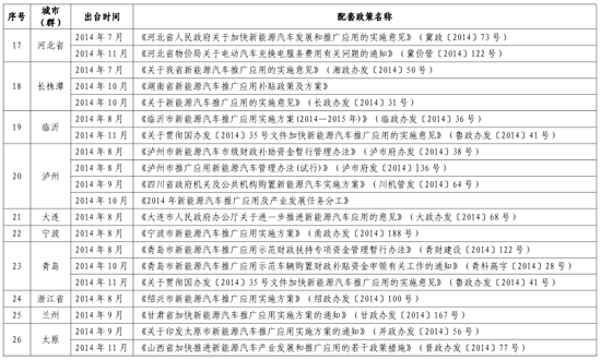 新能源汽车推广应用示范城市(群)配套政策出台进展情况