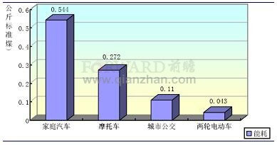 电动车、摩托车、轿车及公共汽车等四种交通方式每人每10公里的能源消耗 (单位:公斤标准煤)