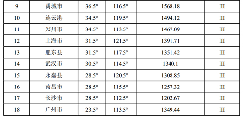 在北纬 36.5° (中纬度)线上选取了6 个点,高纬度地区选取了 3 个点,低纬度地区选取了 9 个点,基本涵盖全国范围。