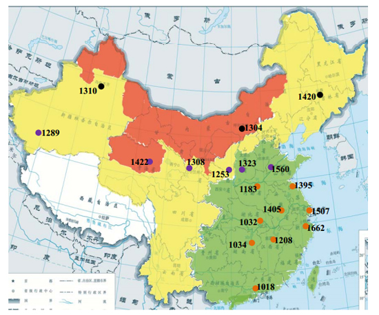 18 个样本点收益指数的平均值为 1315,将它们落到地图上,如下所示。