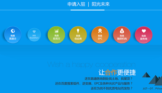 PVtrade光伏交易网现诚邀光伏产品供应商、EPC、融资机构等光伏应用领域服务商;土地、屋顶资源拥有者、电站持有者及电站投资商入驻平台。新版上线前入驻的商户将免费获得优先展示和推荐机会,提升有效用户的关注度,给您更超值的体验!