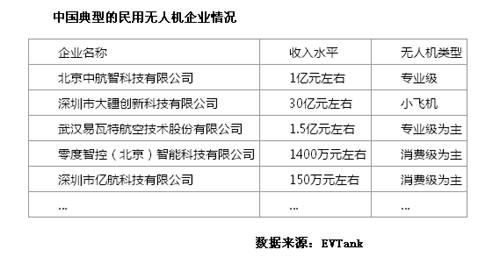 EVTank在该报告中对国内典型的民用无人机企业做了详细的分析,以中航智、大疆、易瓦特、零度智控、深圳亿航等为代表的无人机企业将迎来较好的发展机会。