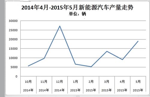 2015年1-5月,新能源汽车累计生产5.36万辆,同比增长近3倍。其中,纯电动乘用车生产2.58万辆,同比增长近3倍,插电式混合动力乘用车生产1.37万辆,同比增长3倍;纯电动商用车生产9248辆,同比增长近6倍,插电式混合动力商用车生产4761辆,同比增长58%。