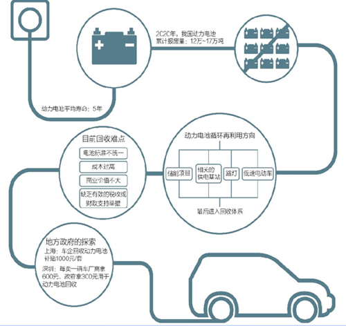 中国汽车技术研究中心预测,到2020年,我国电动汽车动力电池累计报废量将达到12万~17万吨的规模。