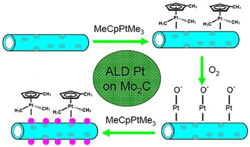 在碳化钼纳米管上原子层沉积铂纳米颗粒示意图