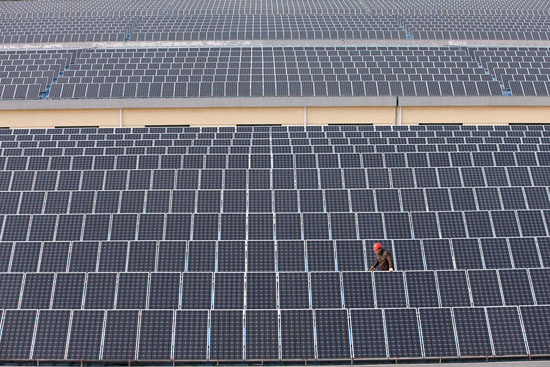 报道称,中国预计在2015年新装发电量14千兆瓦的电池板,而目前全球总的太阳能发电能力为55千兆瓦。