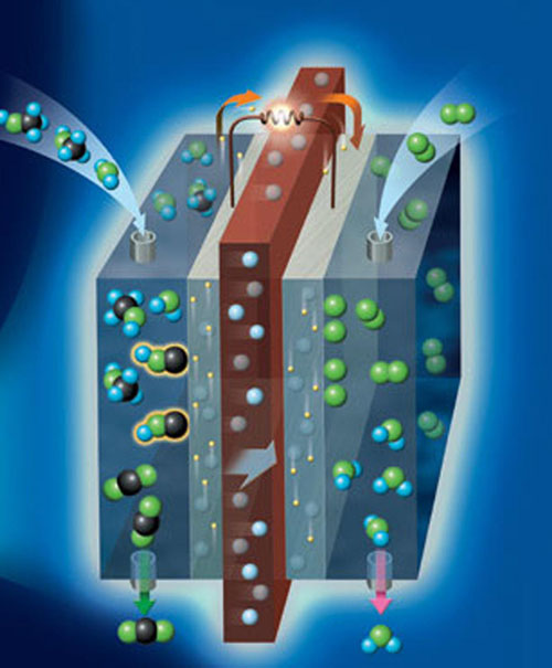 燃料电池车是利用车上装载的氢与空气中的氧气进行化学反应产生的电来驱动车辆。由于燃料电池车只排放水,几乎不排放其它污染物质,被认为是清洁的下一代新能源汽车。但是燃料电池的生产成本居高不下,原因之一就是电池中需要使用“白金”作为催化剂。科学界因此一直试图在研发用其它更廉价材料作为替代催化剂。