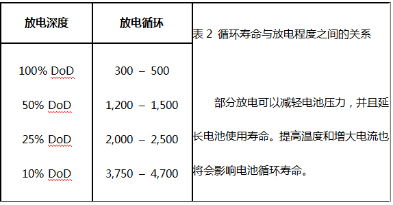 表2对比了锂离子电池在不同程度下充放电循环至容量衰减为70%所需要的周次,其他的变量,如充电电压、温度、负载电流为默认设置。