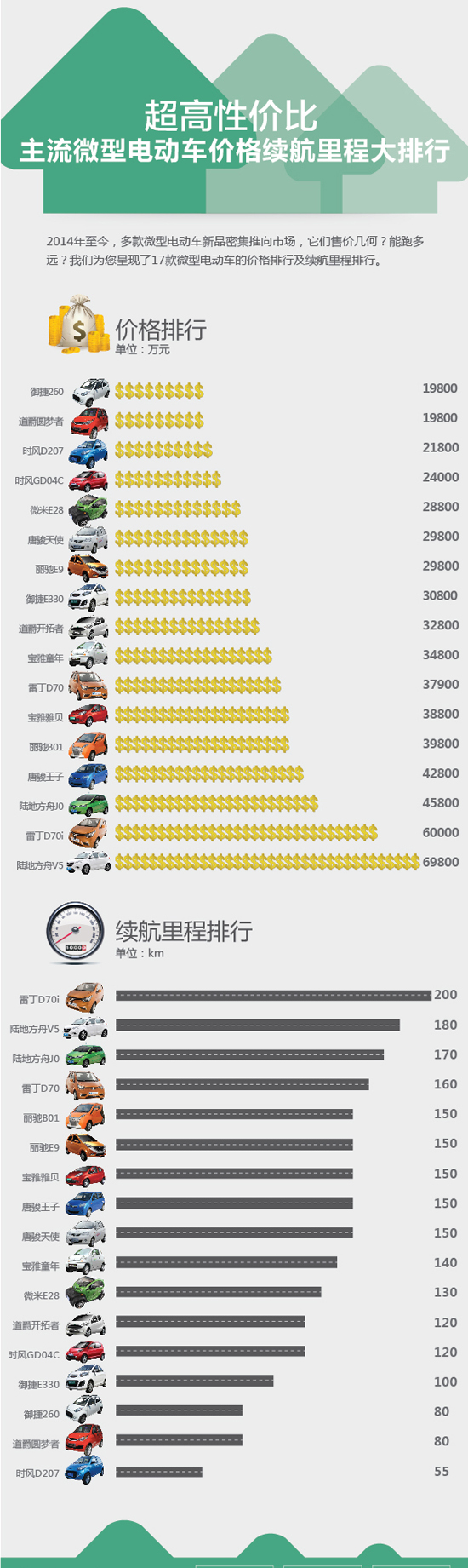 ]2014年至今,多款微型电动车新品密集推向市场,它们售价几何?能跑多远?我们为您呈现了17款微型电动车的价格排行及续航里程排行。
