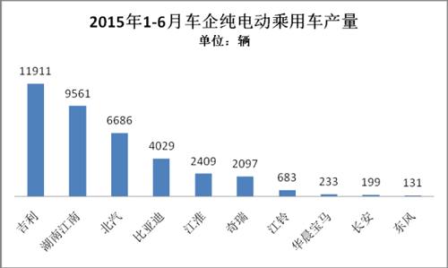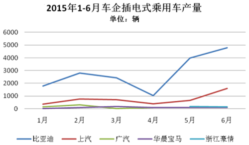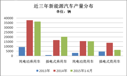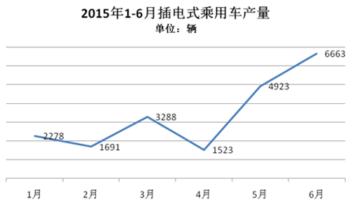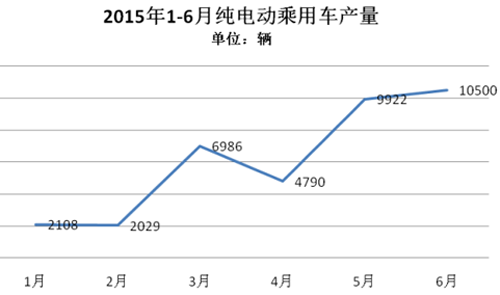 2015年1-6月,纯电动乘用车生产3.63万辆,接近去年全年3.78万辆的产量,同比增长3倍。