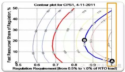 根据KEMA的研究,电力系统中快速调频资源占总调频资源的比例与其对电力系统稳定运行的影响呈现出抛物线关系,而非直线关系。在图2中,每条曲线都代表了当快速调频资源处于不同比例时对应的电力系统的稳定状态。在一定范围内,电力系统会从快速调频资源的增加中收益,并且快速调频资源越多,在促进电力系统稳定性方面的效果越好;然而当快速调频资源达到饱和,这一趋势将会出现反转,即过量的调频资源将会对电网稳定产生负面影响。根据预测,快速调频资源的饱和点将出现在其在总调频资源中的比例达到30%的时候。
