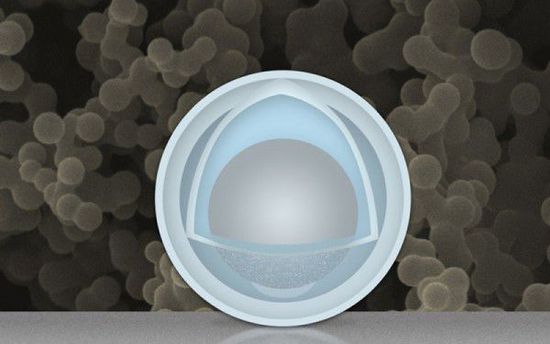 电池的电极由纳米粒子创建,它的正极由二氧化钛“蛋壳”和铝“蛋黄”组成。当“蛋黄”从“蛋壳”中分离,空隙允许其扩张和收缩,这样外壳就不会受到影响。而现人们使用的锂电池其电极每充一次电就会在扩张和收缩发生时出现锂损失,这样则会缩短电池的寿命。