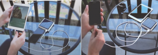 Pocket Sun移动电源可以为手机、平板、iWatch、智能手环等各种移动设备充电,支持iOS和Android系统。充电宝上有一个显示电量的LED灯,以及USB充电接口,目前原型是以1A充电,但设计团队表示他们正在研究,最终版本将会实现2A充电。此外,Pocket Sun还采用了Qi的无线充电技术,内置无线充电线圈。如果忘记带充电线,用户可以使用无线充电功能,当然,前提是你的设备具备无线充电功能。