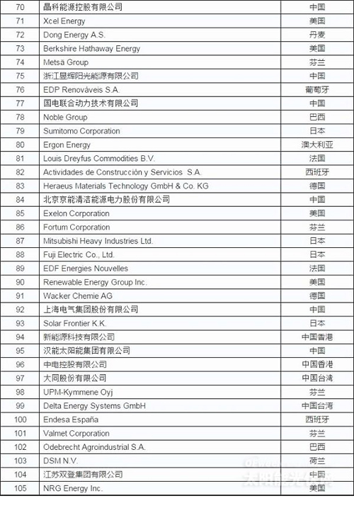 ]日前,由中国能源报社主办的“2015全球新能源企业500强发布会暨新能源发展高峰论坛”在京举行,全球新能源500强名单出炉。