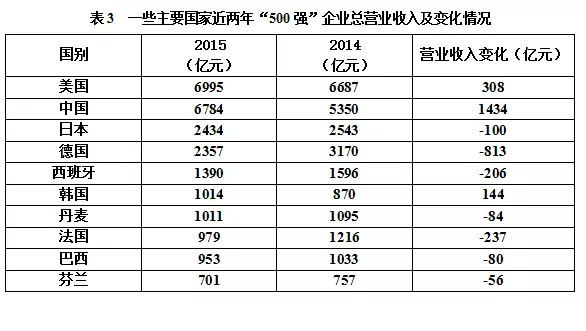 从上榜企业数看,2015“500强”企业中,新兴市场国家上榜企业为234家,比2014的227家增加了7家;而发达国家上榜企业数为266家,比2014的273家减少了7家。新兴市场国家与发达国家二者之间上榜企业数之比为1:1.17(上年则为1:1.20),差距进一步缩小。