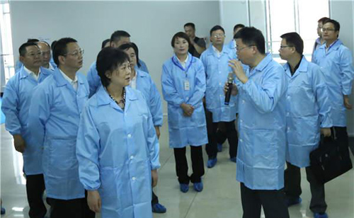 邱则有向湖南省委常委黄兰香介绍锂电池生产工艺流程