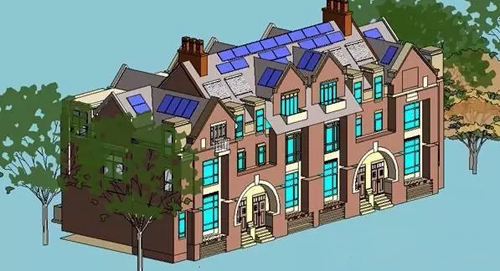 图3别墅分布式发电系统组件布置SketchUp效果图