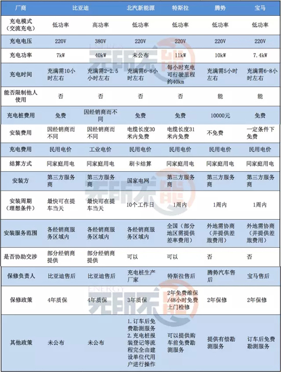 在此,记者整理找到了比亚迪、北汽新能源、特斯拉、腾势和宝马公司的部分充电桩安装信息:
