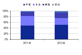 图2:中日韩三国正极材料市场份额占比(数据来源:SNE,安信证券研究中心)