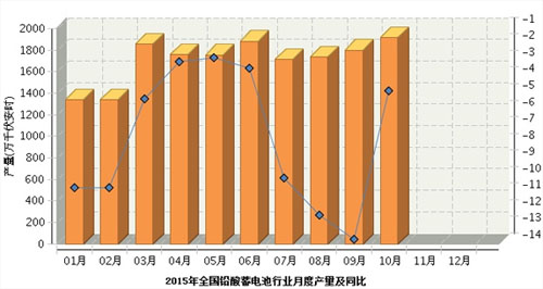 国家统计局最新公布的数据显示,2015年9月中国铅酸蓄电池产量为17,985,767.99千伏安时,同比下降13.72%。2015年1-9月止累计中国铅酸蓄电池产量150,646,332.22千伏安时,同比下降10.47%。最新数据如下表所示: