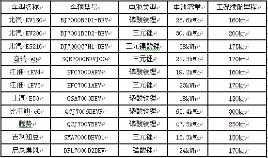 新能源汽车电池分类表
