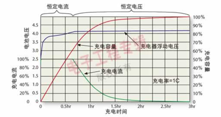 充电开始时,应先检测待充电电池的电压,如果电压低于3V,要先进行预充电,充电电流为设定电流 的1/10,一般选0.05C左右。电压升到3V后,进入标准充电过程。标准充电过程为:以设定电流进行恒流充电,电池电压升到4.20V时,改为恒压充电,保持充电电压为4.20V。此时,充电电流逐渐下降,当电流下降至设定充电电流的1/10时,充电结束。