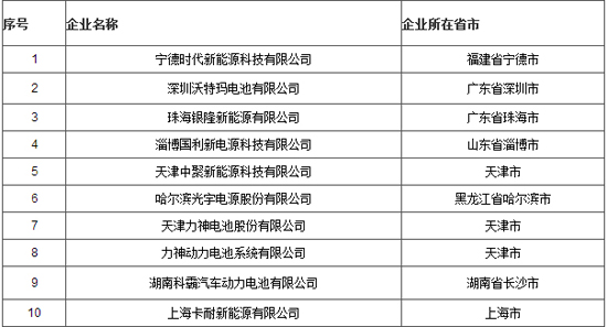符合《汽车动力蓄电池行业规范条件》企业目录(第一批)