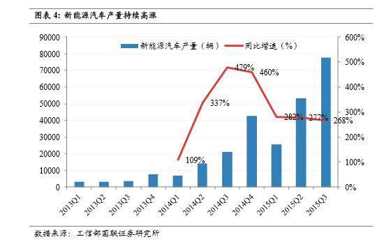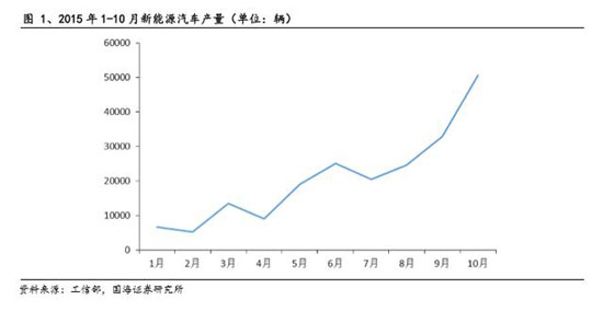 今年以来,新能源汽车的产销呈现了井喷之势。此外,《中国制造 2025》指明未来行业空间,2020年100万辆可期。中国汽车工业协会副秘书长许艳华也称,中国新能源汽车产业发展形势喜人,今年实现全年新能源汽车销量超越美国成为全球第一大新能源汽车市场几无悬念。