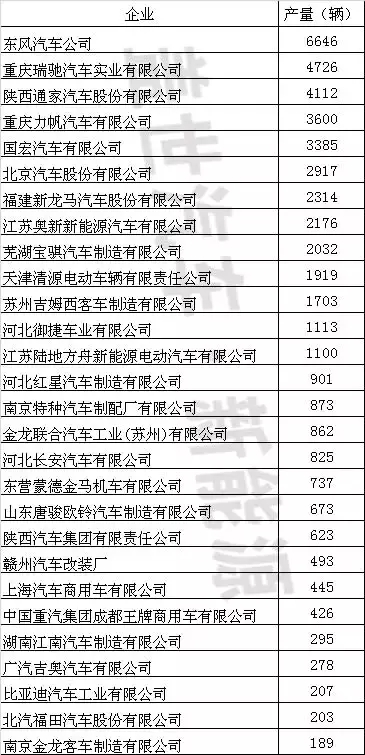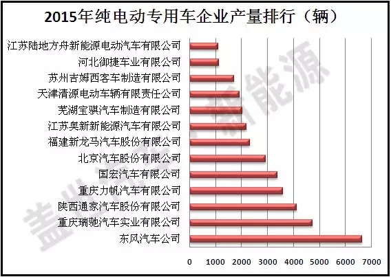根据统计,2015年有13家纯电动专用车生产企业全年产量超过1000辆。