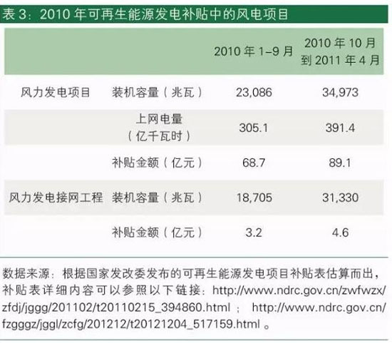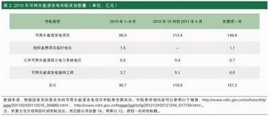 以2010年为比较年份。图1显示,2010年的电价附加征收额为154亿元。表2显示,折算后的2010年可再生能源发电项目补贴为157.2亿元。二者之间基本一致,可以说2010年可再生能源发电项目补贴基本没有缺口。