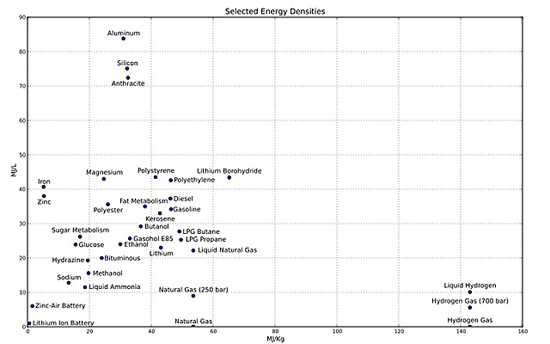 对于大多数物质,电子转移比例都很低,原因前面提到过。由此可见只有在元素周期表的前两行的轻原子有可能成为好的能量载体。前两行元素只有10个,氢氦锂铍硼,碳氮氧氟氖。其中氦与氖都是惰性气体,排除。氧与氟都是氧化剂,排除。氮大多数情况下都是准惰性气体,如果不是惰性气体要么毒死人要么熏死人,排除。所以我们还剩下5个元素,氢(100%),碳(66%),硼(60%),铍(50%),锂(33%)。