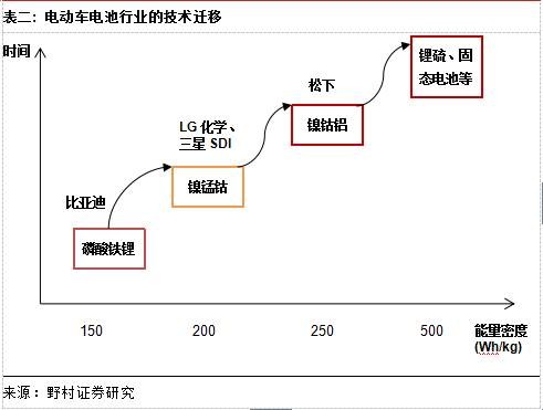 在对动力电池的研究当中,我们发现电池与半导体行业有诸多类似,即都是以技术和产能扩张带动发展。我们认为电池技术是动力电池市场竞争中的主要分水岭,和半导体行业通过技术迭代以争取额外毛利的商业模式类似。在我们看来,松下目前在能量密度和成本方面依然领先,以此成为特斯拉的唯一供应商。LG化学和三星SDI则在NMC三元电池技术和生产效率上领先中国厂商,并得以进入中国电动汽车市场。比亚迪和其它本地厂商一直致力于通过提升电池技术来和全球主要同行在价格效率方面竞争。