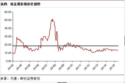 我们观察到钴金属价格目前处于历史低位。在由磷酸铁锂向NMC三元电池升级的过程中,将产生对钴金属的大量需求。由于钴属于稀有金属,绝大部分储存在政局不稳的民主刚果,我们认为钴价格在未来进入上升通道,重复2006到2008年间由智能手机和笔记本电脑电池需求带动的价格上浮。