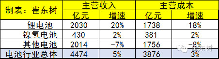 从电池行业的成本看,成本压力较小,锂电池的成本增长慢于收入增长两个百分点;镍氢电池的也是稍慢,铅酸等其他电池的成本下降快于收入下降1个点。行业运行状态总体很好。