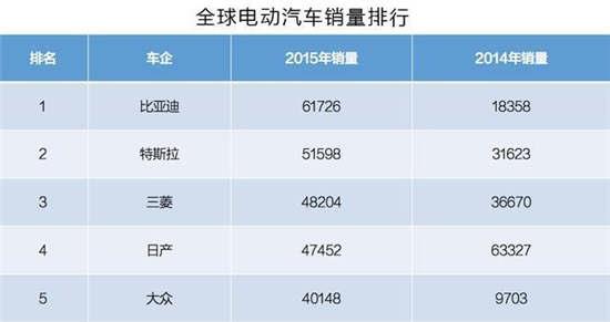 2015年中国电动汽车销量为20万7382辆,占全球总量的37.7%。比亚迪一家的销量为6万1726辆,超过特斯拉,是全球电动汽车销量最大的厂商。但是比亚迪的电池仅为自己生产的车型提供,在一定程度上制约了比亚迪电池技术的全球推广。