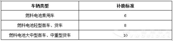 四、燃料电池汽车推广应用补助标准(单位:万元/辆)